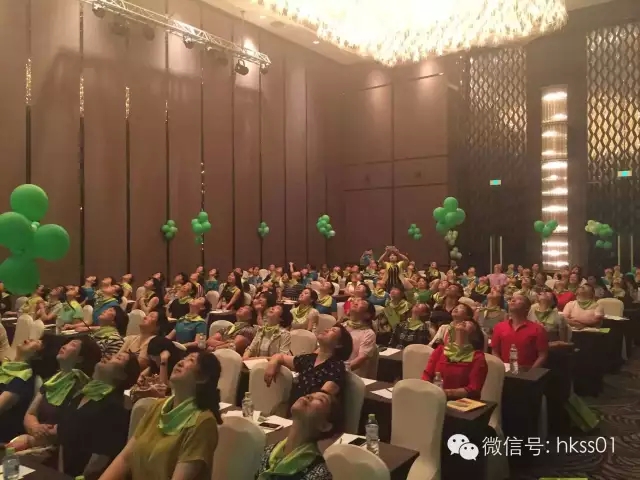 會場以代表著健康與生命力的綠色貫穿,每位家人都佩戴著綠絲巾,全場瞬間變成了綠色的歡樂海洋!會議場面十分火爆,不僅有HIGH爆全場的美頸操,更有專業的健康知識傳遞以及法姿純客戶的效果分享,多方位體現出企業與項目的優勢,并獲得一致好評!